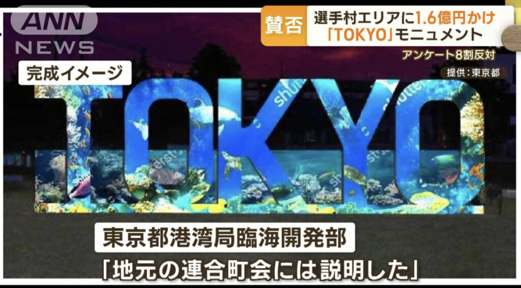 1: ばーど ★ 2023/11/07(火) 17:31:07.21 ID:Lfu86sj/9 東京オリンピック・パラリンピックで選手村に使用されたエリアに「TOKYO」の文字をかたどったモニュメントを1億円以上を投じて建設する都の計画が物議を醸しています。 ■モニュメント設置に“反対8割”... -