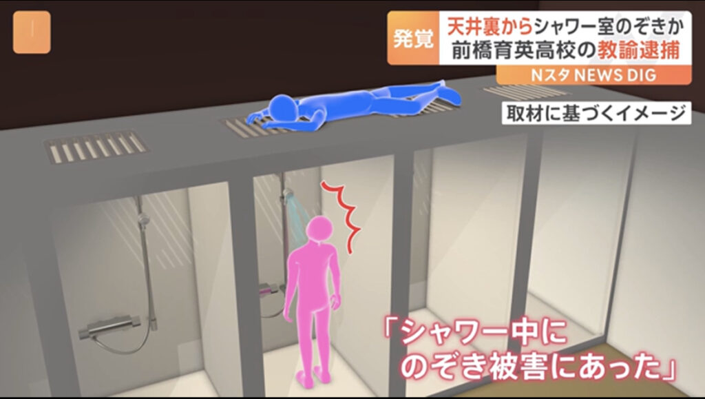 1: シャチ ★ 2023/11/07(火) 18:01:54.80 ID:keYIoL9l9 群馬県にある前橋育英高校の教諭の男が、前橋市内のフィットネスジムで天井裏からシャワー室の女性の裸をのぞき見したとして逮捕されました。 逮捕されたのは群馬県の前橋育英高校の教諭・関直人容疑... -