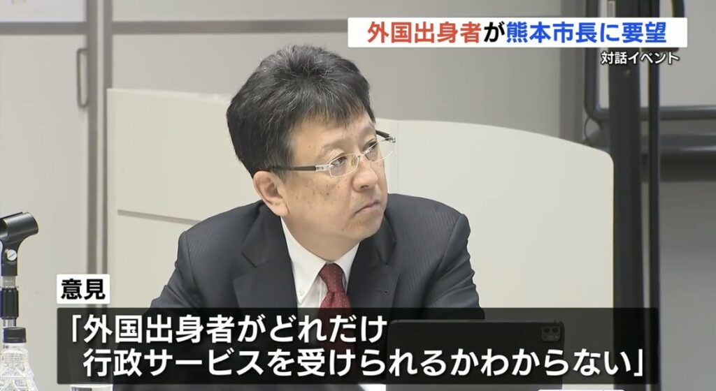 1: ぐれ ★ 2023/11/04(土) 22:40:01.92 ID:C+EtB2Hb9 >>2023年11月3日(金) 12:30 RKK 熊本市で暮らす外国出身者と市長が対話する集会が開かれ、出席者からは生活面の課題を指摘する声が上がりました。 外国出身者が対象の市長との対話イベントは4年... -