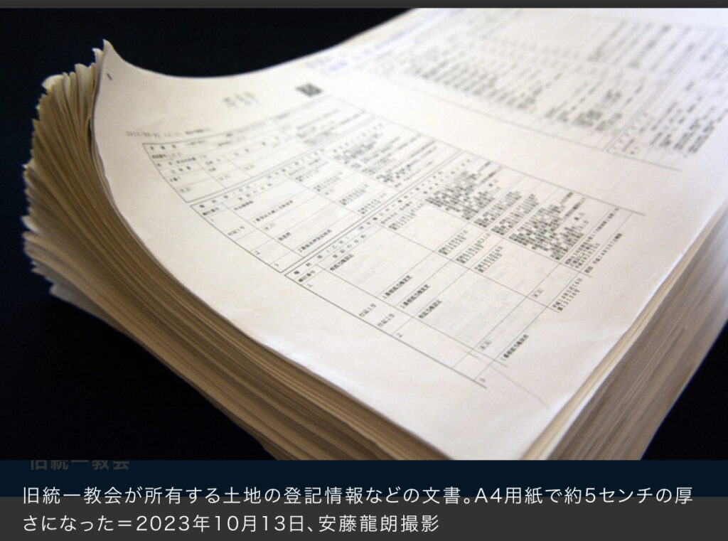 1: ぐれ ★ 2023/11/04(土) 09:54:48.38 ID:XJIMvMkc9 >>2023/11/3 06:00(最終更新 11/4 08:07) 毎日新聞 世界平和統一家庭連合(旧統一教会)が公表している全国の関連施設296カ所の土地・建物について毎日新聞が不動産登記を確認したところ、土... -