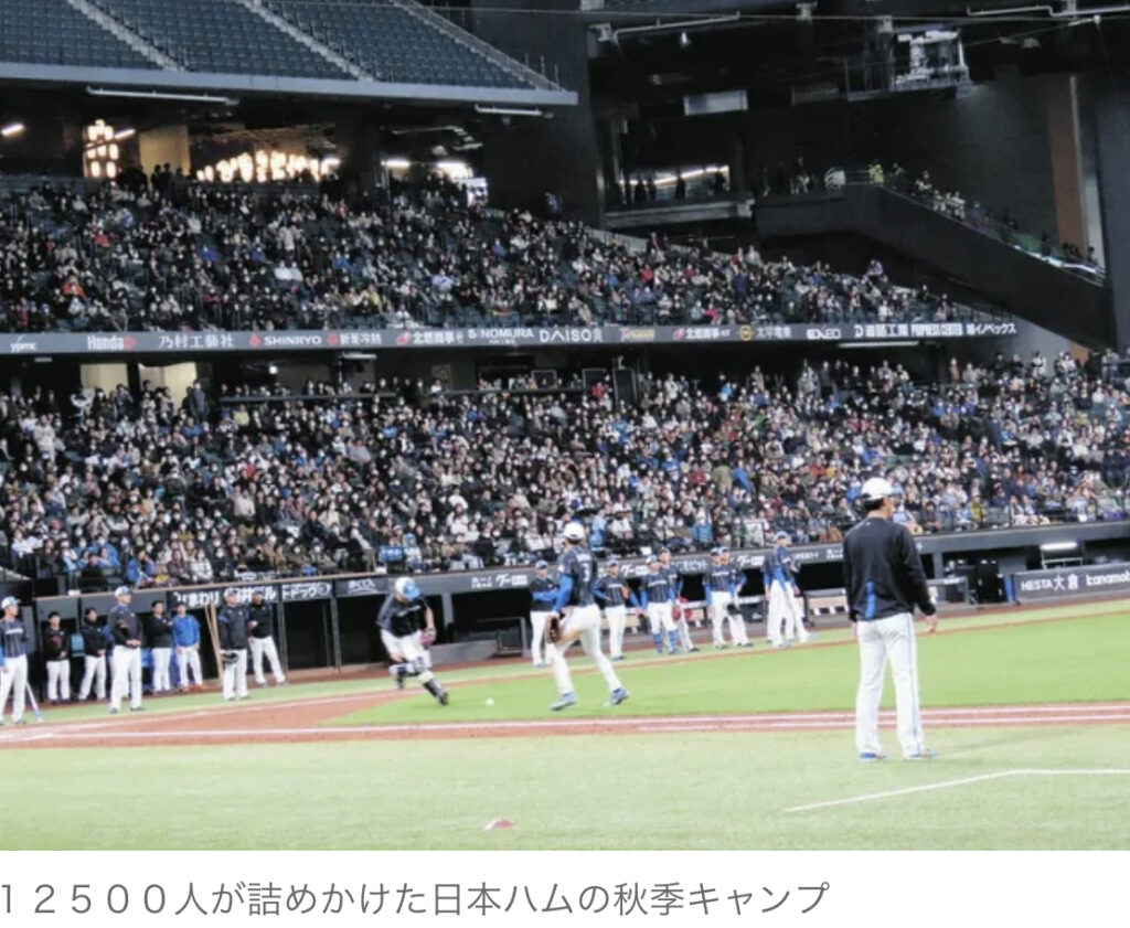 1: 鉄チーズ烏 ★ 2023/11/03(金) 22:18:42.34 ID:V4clTI2B9 11/3(金) 17:23配信 中日スポーツ https://news.yahoo.co.jp/articles/fe6e72252a04a29bd392df148a6c6e06f345e01f 日本ハムの秋季キャンプ3日目の3日、エスコンフィールドにファンら1万25... -