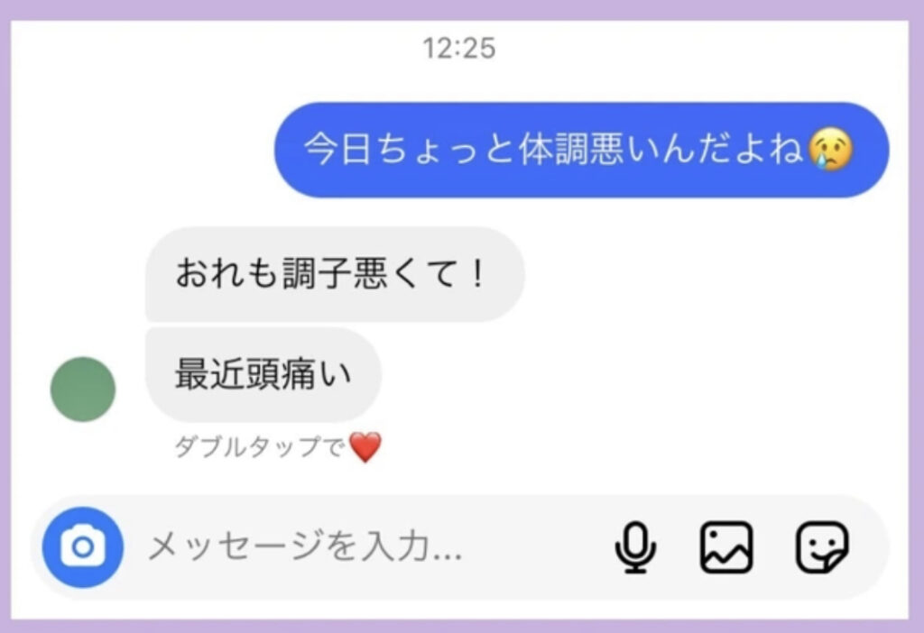 「最近体調が悪いんだよね」「俺も」「えっ?」「えっ?」