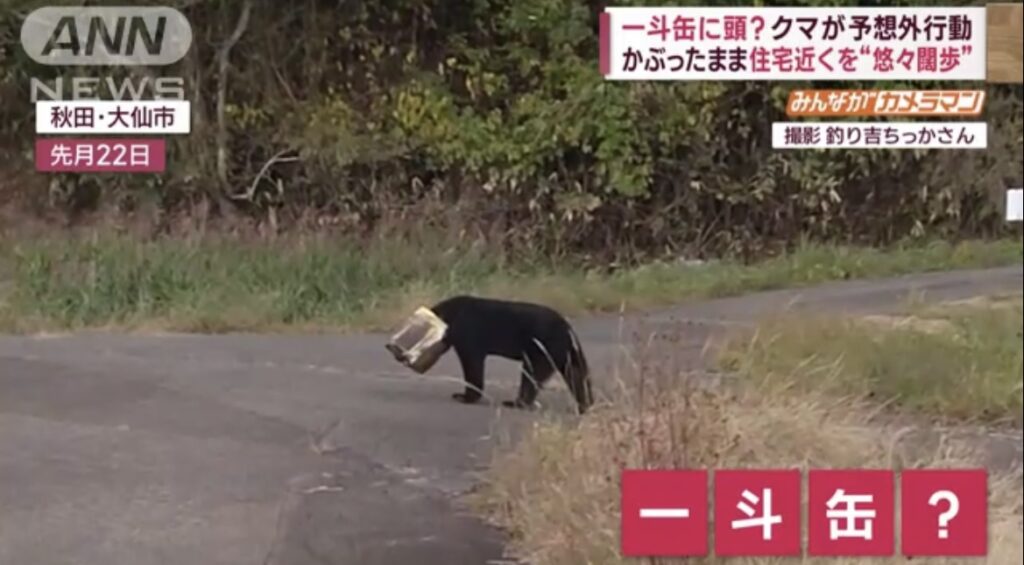 【秋田】頭に一斗缶をかぶったクマが道路を徘徊