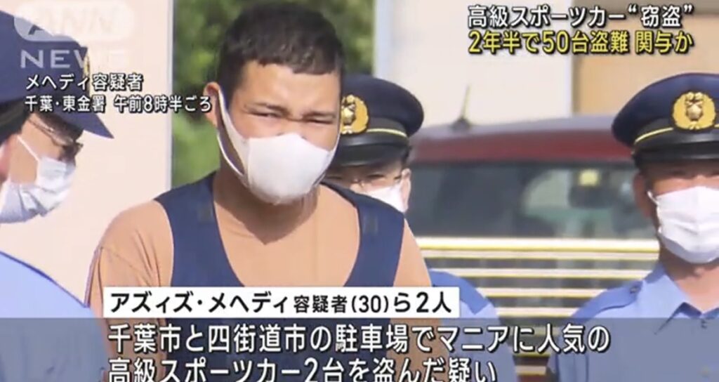 1: 樽悶 ★ 2023/09/30(土) 00:21:51.99 ID:T7wTEiBO9 千葉県の駐車場から高級スポーツカーを盗んだなどとして男3人が逮捕されました。 アフガニスタン国籍のアズィズ・メヘディ容疑者(30)ら2人は4月、仲間と共謀し、千葉市などの駐車場でマニアに人気の... -