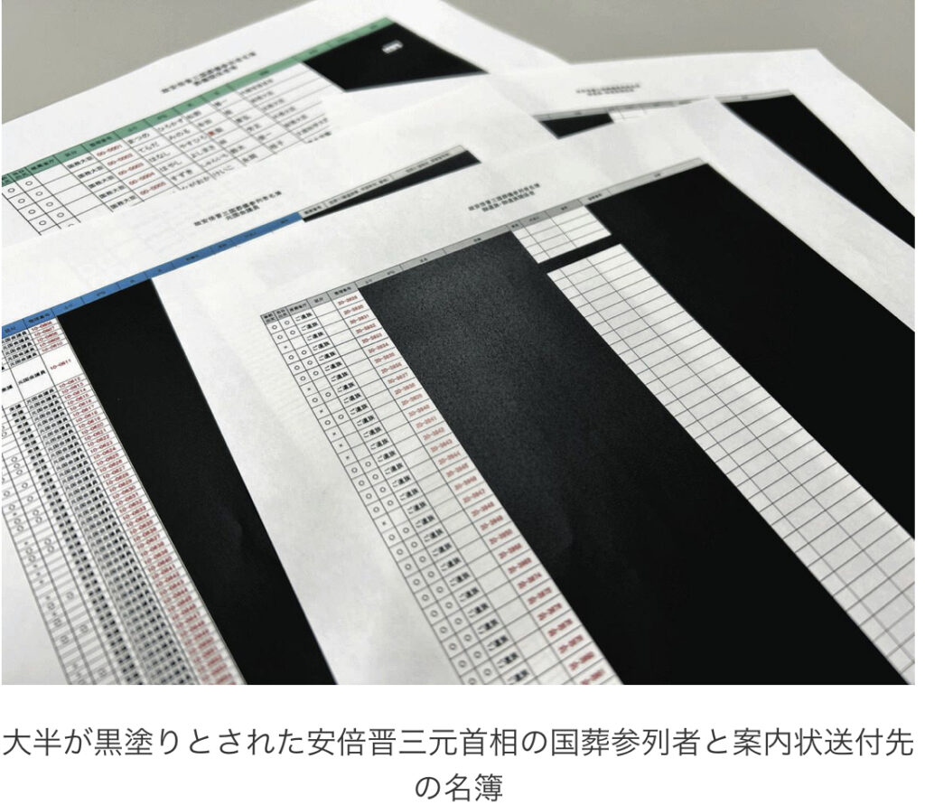 安倍晋三元首相の国葬から1年…参列者名簿は大半が黒塗り、政府は苦しい説明
