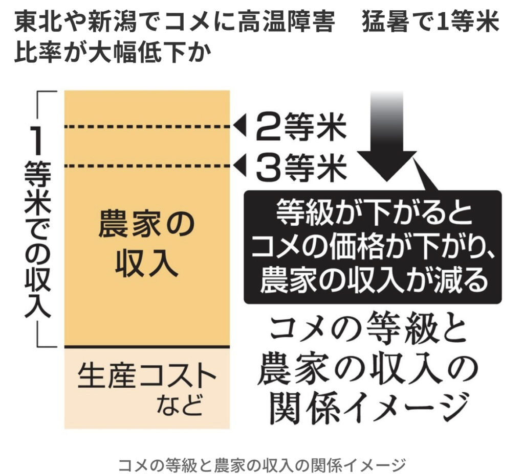 東北や新潟でコメに高温障害 猛暑で1等米比率が大幅低下か