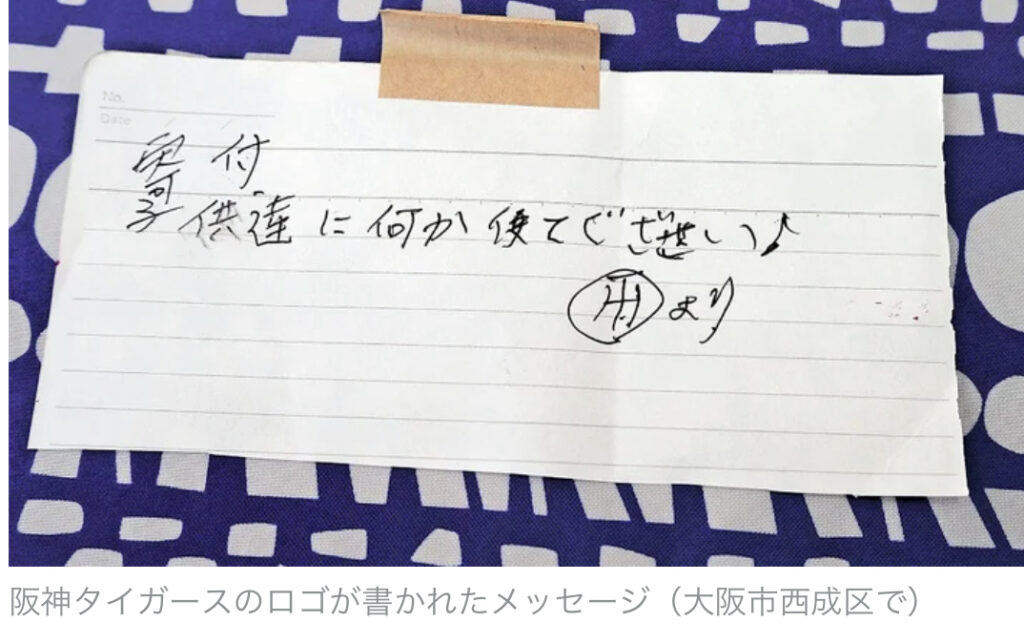 【大阪】西成の保育所に50万円入り封筒 虎党から匿名寄付か…同封のメモに阪神タイガースのロゴ