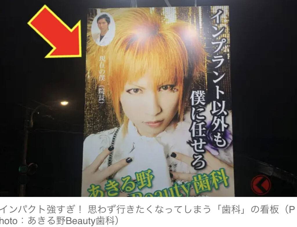 「インプラント以外も僕に任せろ」歯科院長は元V系バンドマン!?インパクトありすぎな謎看板