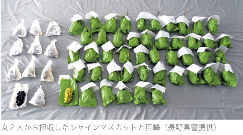 【長野】畑近くで職務質問した車内に大量のシャインマスカット、盗んだ女2人「食べたり配ったりするため」