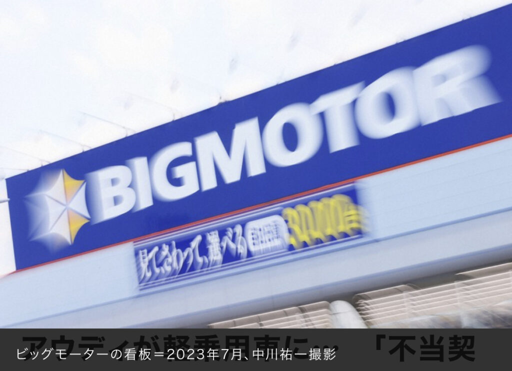 引用元: ・【朗報】客「アウディ修理して」ビッグモーター「廃車しか無理やな。1万円で下取るで!」 2: それでも動く名無し 2023/09/21(木) 20:42:17.99 ID:Mn9amQf70 中古車販売大手「ビッグモーター」の名古屋市内の店舗で、車の買い替え契約を不当な条... -