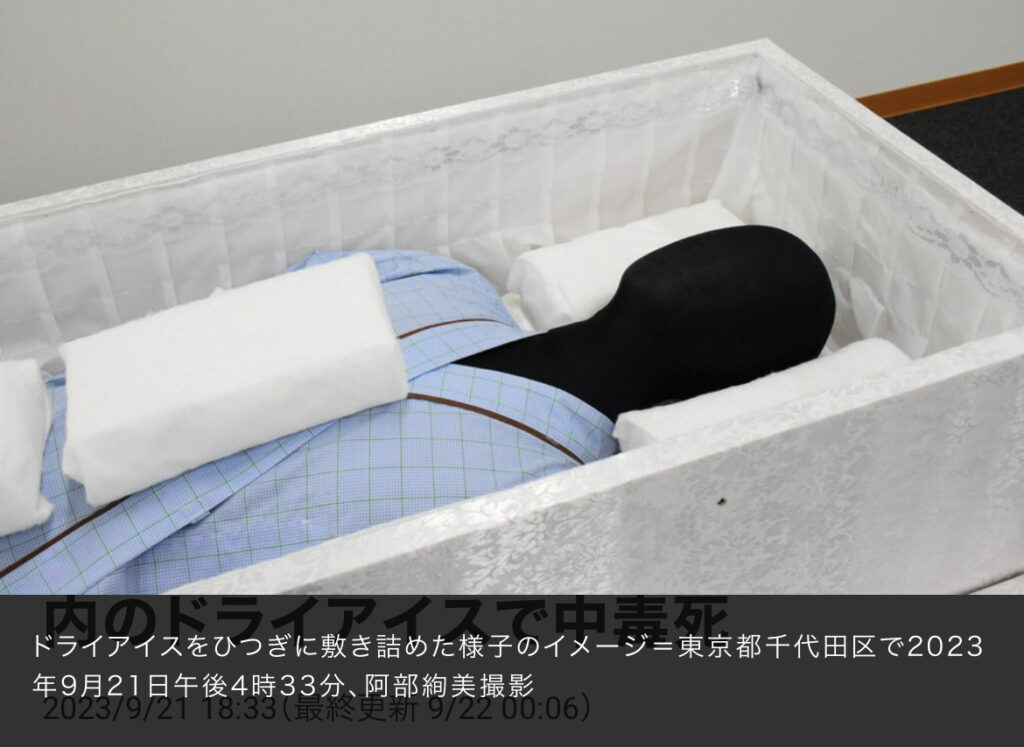 1: ちょる ★ 2023/09/21(木) 21:10:25.66 ID:??? TID:choru 消費者庁と国民生活センターは21日、遺体の保冷目的で使われるドライアイスが気化した二酸化炭素を吸い込んで中毒死したと疑われる事故が少なくとも3件あったと発表した。いずれも遺体を納めたひ... -