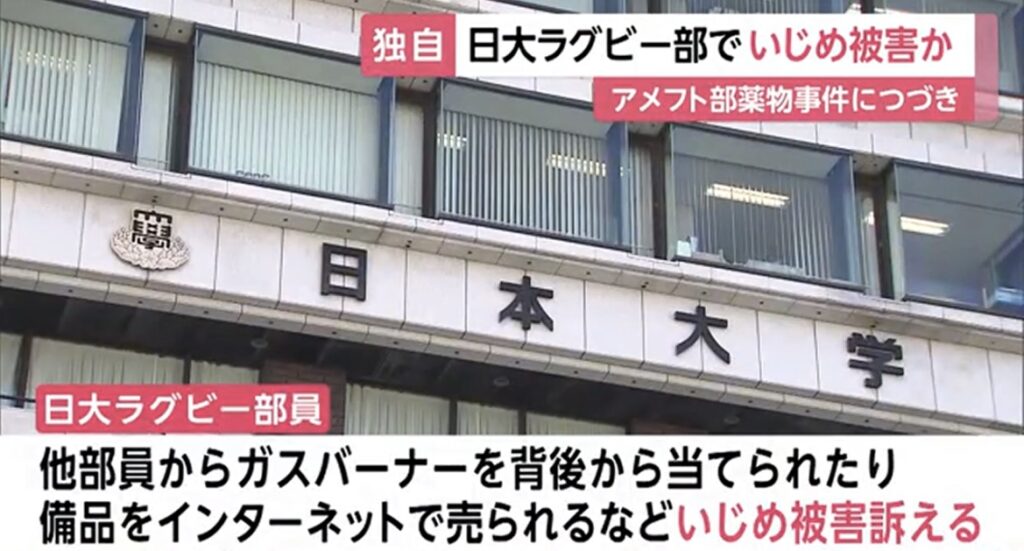 1: ちょる ★ 2023/09/20(水) 12:26:22.41 ID:??? TID:choru アメリカンフットボール部員による薬物使用問題に揺れる日本大学で、いじめの被害についてラグビー部内で訴え出があったことが新たにわかった。大学側は部内でいじめがなかったか、第三者委員会... -