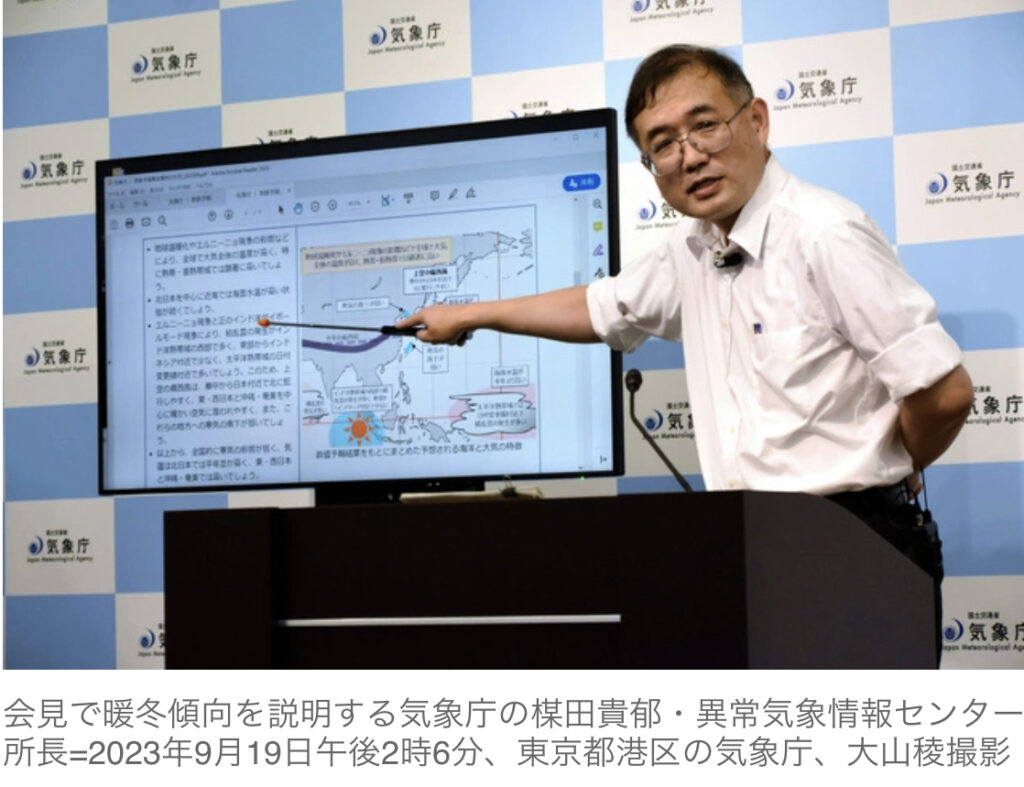 1: ぐれ ★ 2023/09/20(水) 09:03:00.51 ID:0JAll3ke9 >>9/19(火) 17:00配信 朝日新聞デジタル 気象庁は19日、冬(12~2月)にかけての天候について、暖冬となりそうだとの見通しを示した。また、10月上旬まで最高気温が30度を超える真夏日となる地域... -