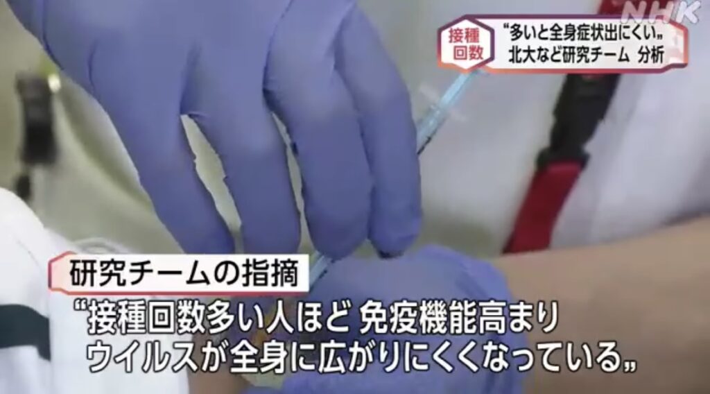 【北海道大学研究】新型コロナワクチン接種多いと全身症状出にくい 「多い人ほど免疫機能が高まるため、ウイルスが全身に広がりにくく」