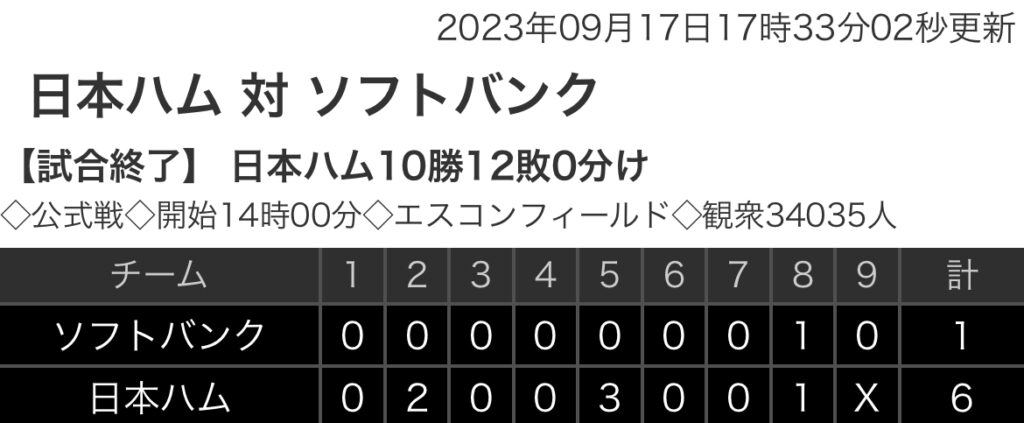 【野球】パ・リーグ F 6-1 H [9/16] 日本ハム3連勝!根本6回途中無失点2勝目、奈良間先制スクイズ ホークス和田5失点