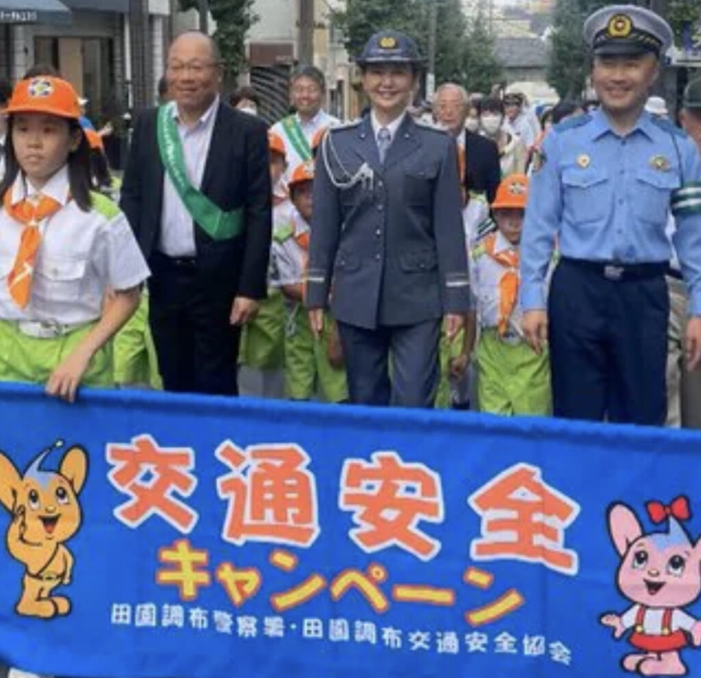 女優・南野陽子さんが一日警察署長に 「自転車のヘルメットを被って」