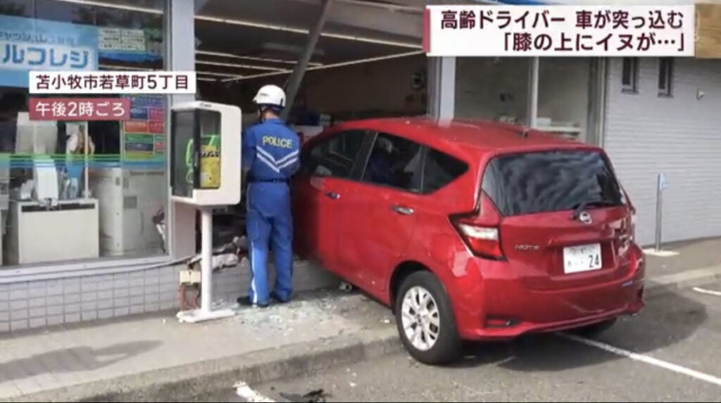 膝の上に犬がきて慌ててアクセルを踏んだ結果、コンビニにノートが突っ込む 苫小牧