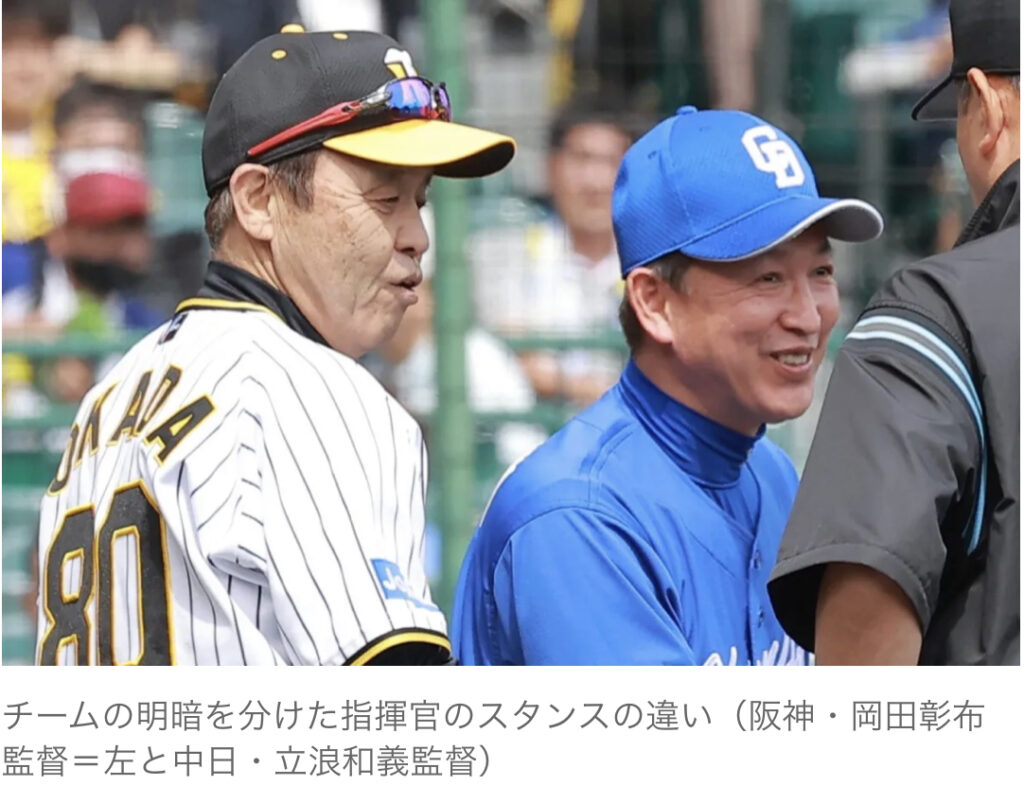 【野球】阪神と中日の明暗を分けた指揮官の言葉 岡田監督「四球はヒットと一緒」、立浪監督「見逃し三振は許さない」
