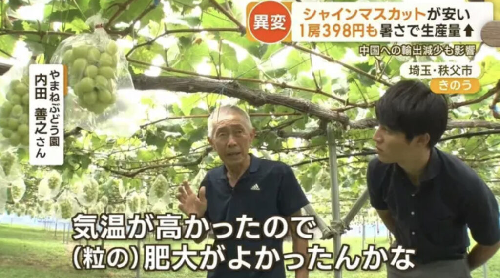 シャインマスカットが1房398円に価格暴落、「処理水の黒い雨を浴びた」などと風評被害で中国輸出が激減