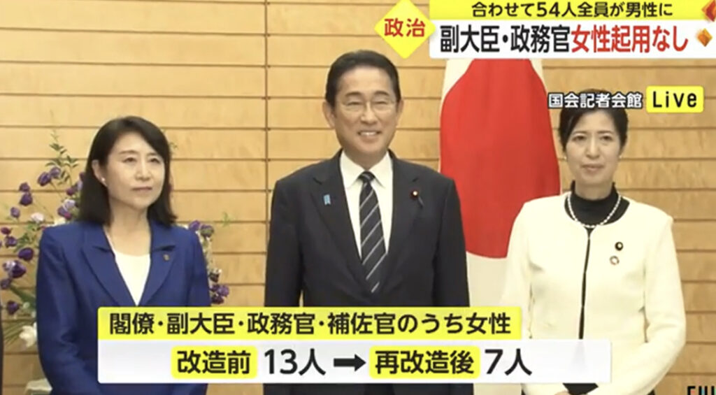 岸田首相 内閣改造 副大臣・政務官での女性起用はゼロ