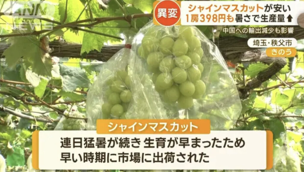【特売品】1房398円も…シャインマスカット異例の安さ 暑さで生産量↑ 中国への輸出減少も影響