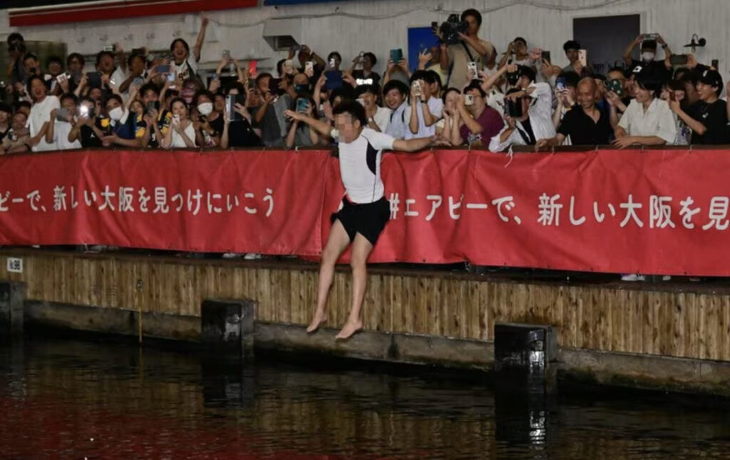 【悲報】道頓堀に飛び込もうとする水着女子が出現 虎ファン勃起