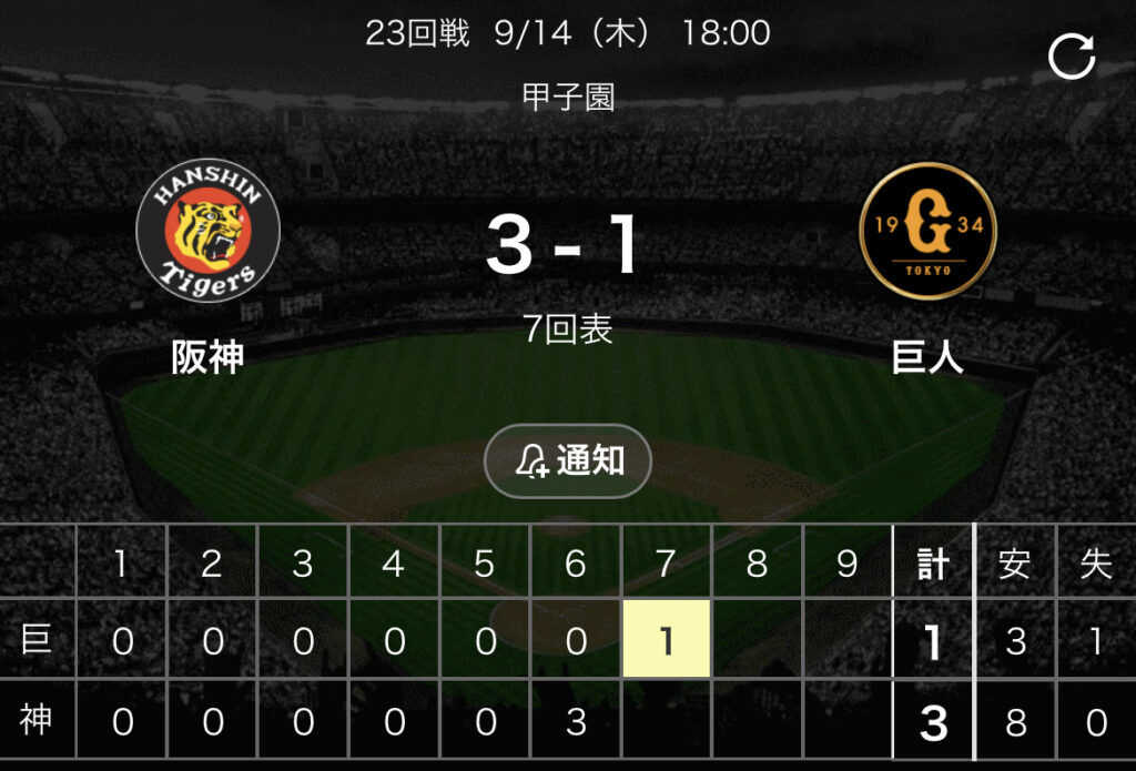 1: 鉄チーズ烏 ★ 2023/09/14(木) 19:45:57.85 ID:NnumIBt39 6回裏阪神の攻撃 5番 佐藤 輝明 二死1塁 1-1からバックスクリーンに飛び込む2ランホームランを放つ 神3-0巨 4番 大山 悠輔 一死1,3塁 1アウト1,3塁の2-0からセンターへの犠牲フライを放つ 神1-0... -