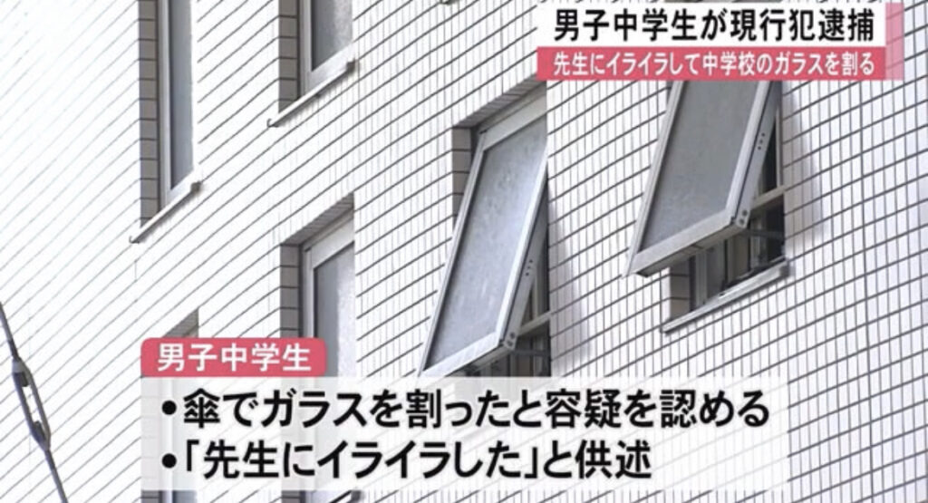今の中学生は、学校の窓ガラス割ると逮捕される