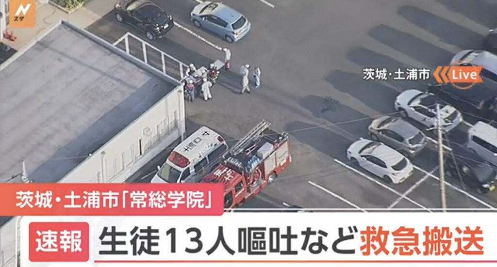 常総学院で生徒ら13人嘔吐 救助中