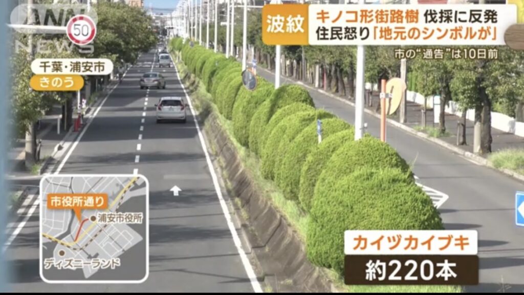 【千葉・浦安のシンボル】“キノコ形”街路樹伐採に一部住民が反発「いきなり切るとは」