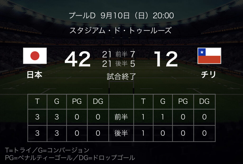 【ラグビー/W杯】プールD 日本、初出場のチリに先制トライ許すも42-12で破り今大会白星発進!5トライでボーナスポイントも獲得