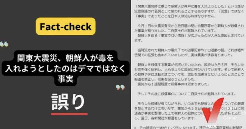 【ファクトチェック】「関東大震災、朝鮮人が毒を入れようとしたのはデマではなく事実」は誤り