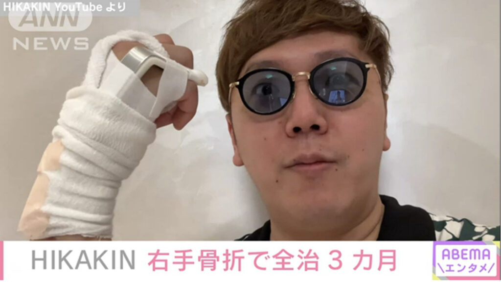 ユーチューバーのHIKAKINさん「【ご報告】全治3カ月」自宅で転倒し右手骨折