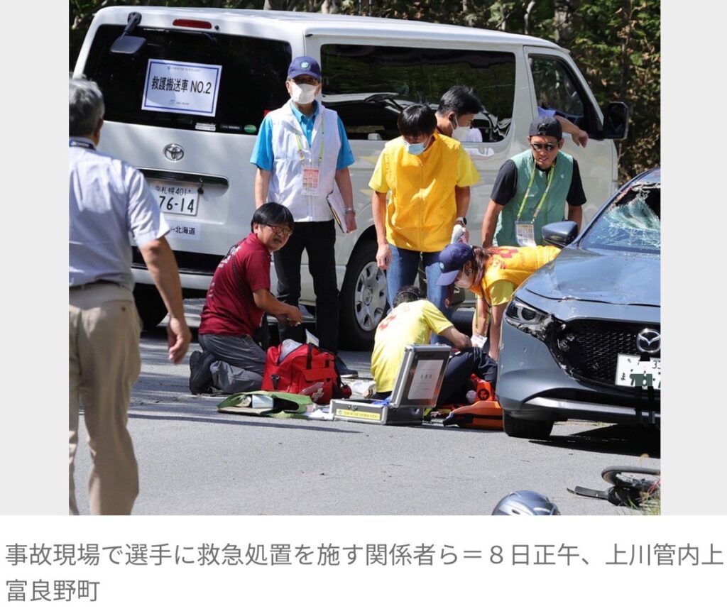 1: 夜のけいちゃん ★ 2023/09/09(土) 16:07:42.59 ID:C5q7Nkeo9 9/9(土) 14:54配信 北海道ニュースUHB 北海道上富良野の公道で行われた自転車レース「ツール・ド・北海道」に参加していた選手が、乗用車と衝突した事故で、意識不明の重体となっていた選手...