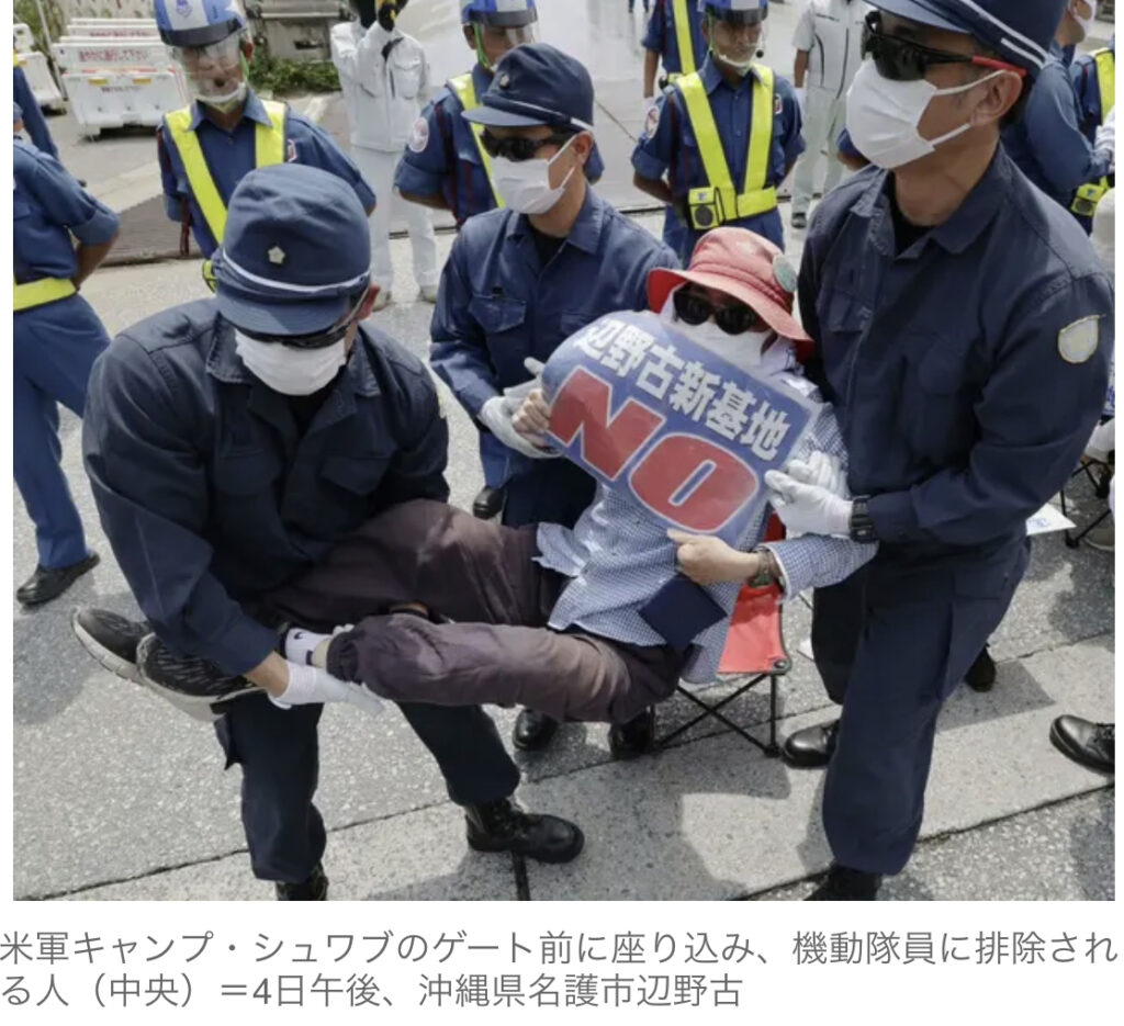 1: ばぐっち ★ 2023/09/04(月) 19:39:55.60 ID:??? TID:BUGTA 米軍普天間飛行場(沖縄県宜野湾市)の名護市辺野古移設を巡る訴訟で県の敗訴が確定した4日、埋め立て現場に隣接する米軍キャンプ・シュワブ(名護市など)のゲート前で反対派市民は「不当判...