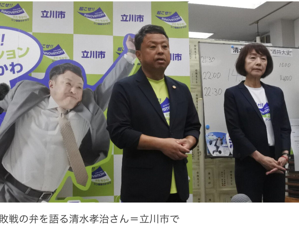 立川市長選挙 自民推薦・清水さん破れる 自公協力が破綻状態で「まな板の上の鯉だった」