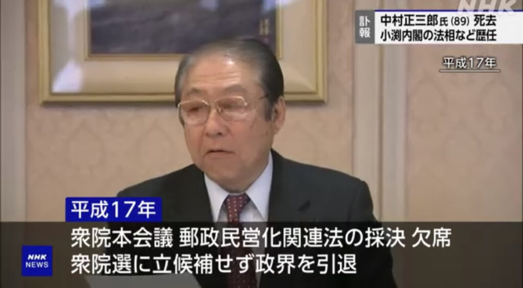 【訃報】自民 中村正三郎 元衆議院議員が死去 89歳 法務大臣など歴任