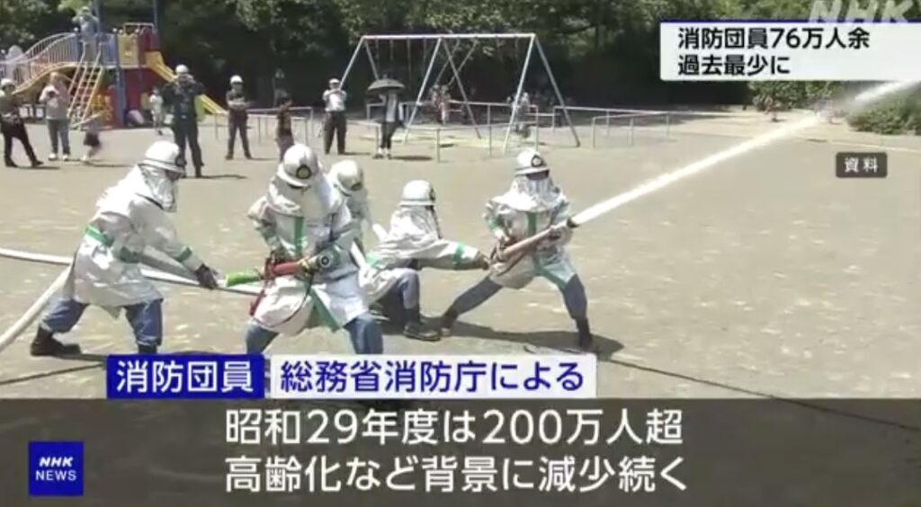 消防団員 最少に “女性や若年層にも入団促す” 総務省消防庁 (NHK)