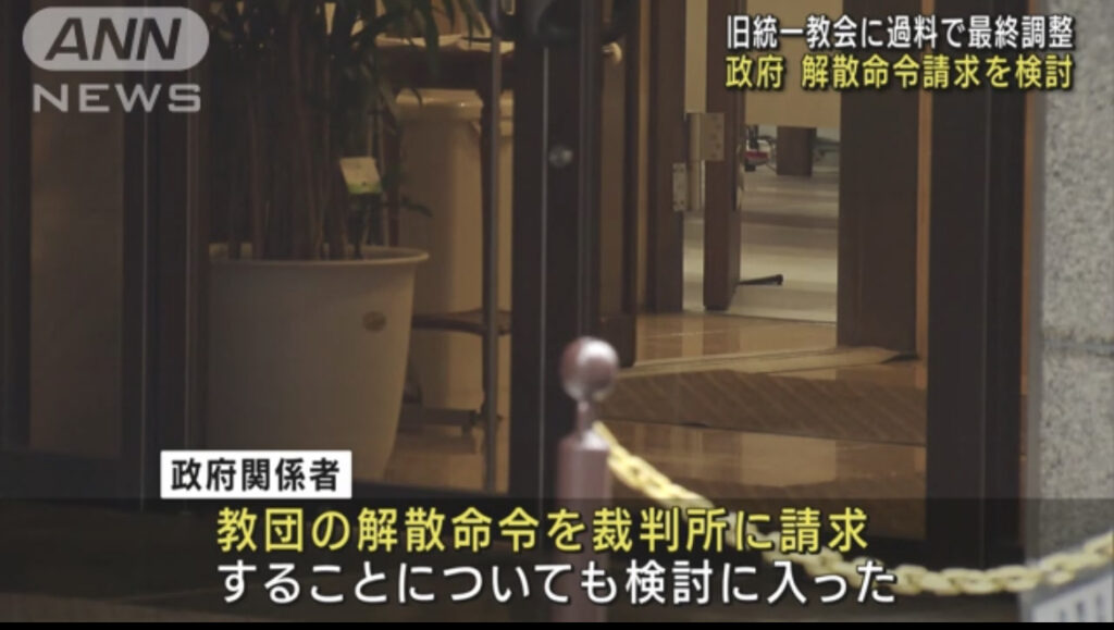 旧統一教会の解散命令請求 政府が検討 「過料」を科すことでも最終調整