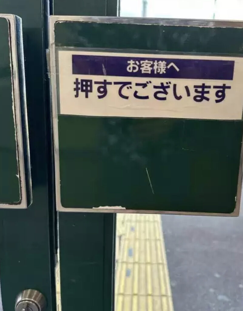 「押すでございます」 無理やりすぎる丁寧語で書かれた標識が話題に スーパーで見つけて“仰天”