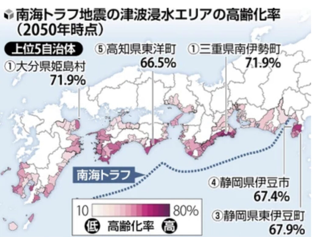 【高齢化】南海トラフの津波浸水域、2050年には「限界集落」が3割…避難支援が困難に