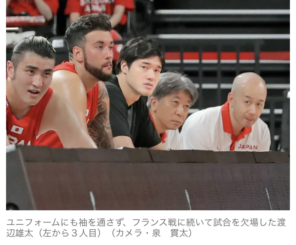1: フォーエバー ★ 2023/08/20(日) 00:32:35.97 ID:gazzDOoj9 8/20(日) 0:07配信 ユニフォームにも袖を通さず、フランス戦に続いて試合を欠場した渡辺雄太(左から3人目)(カメラ・泉 貫太) ◆バスケットボール男子 ▽国際強化試合 日本68―103ス... -