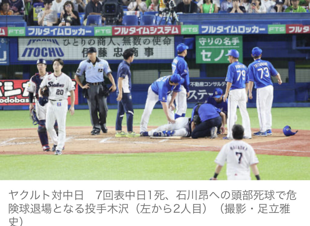 1: Ailuropoda melanoleuca ★ 2023/08/19(土) 21:28:37.15 ID:I7JXvvqK9 2023年8月19日20時57分 <ヤクルト-中日>◇19日◇神宮 中日石川昂弥内野手(22)が7回1死走者なしの第4打席でヤクルト2番手木沢から左側頭部に死球を受けた。 その場に倒れ込み、立...