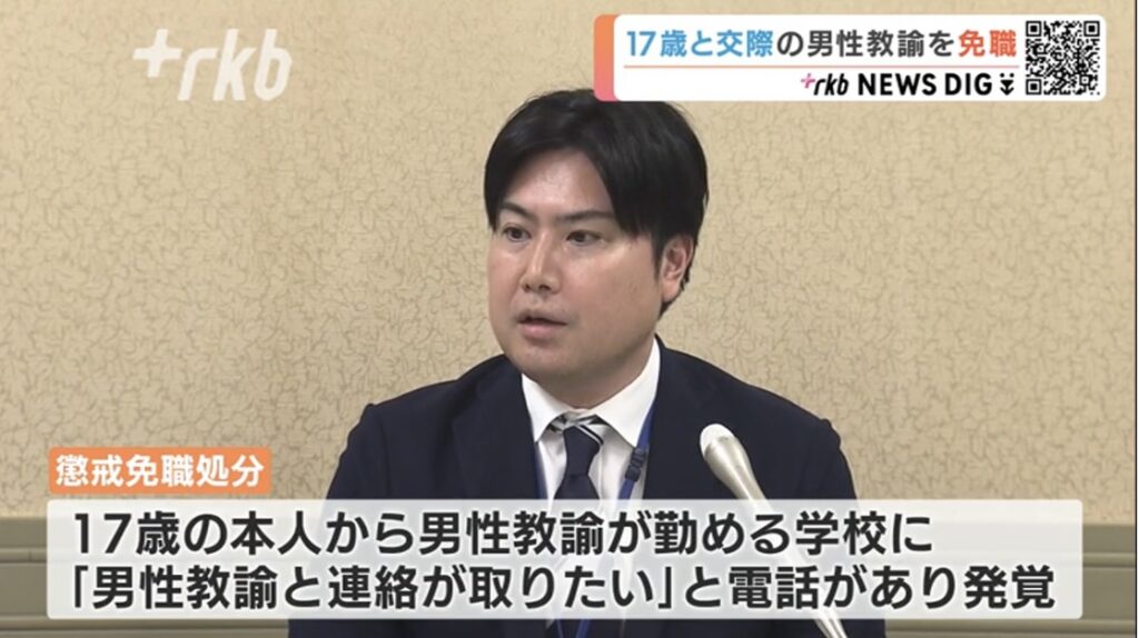 1: ばぐっち ★ 2023/08/18(金) 18:24:49.93 ID:??? TID:BUGTA 福岡市教育委員会は、17歳の未成年と交際しみだらな行為をしたとして、小学校教諭の男性を懲戒免職処分にしました。また、通行中の女性の胸をいきなり触ったとして、別の小学校に勤務する男性... -