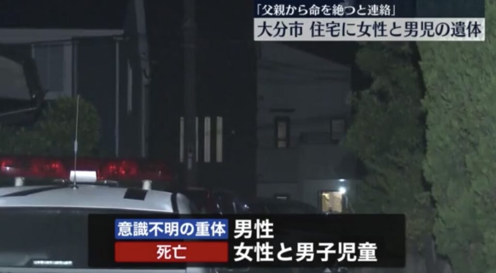 【大分】父親から命を絶つと連絡があったと110番…住宅で成人女性と男子児童の遺体、成人男性1人が意識不明で発見