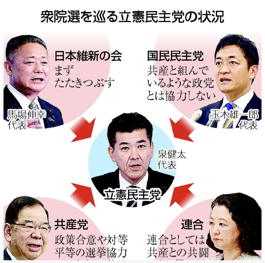 1: 蚤の市 ★ 2023/08/17(木) 13:41:58.46 ID:GE7+LJGL9 次期衆院選で、立憲民主党の泉健太代表が目指す野党各党との候補者調整の見通しが立っていない。各党は比例票の掘り起こしも視野に、独自候補の擁立を推進。競合区が増えており、調整はますます困... -