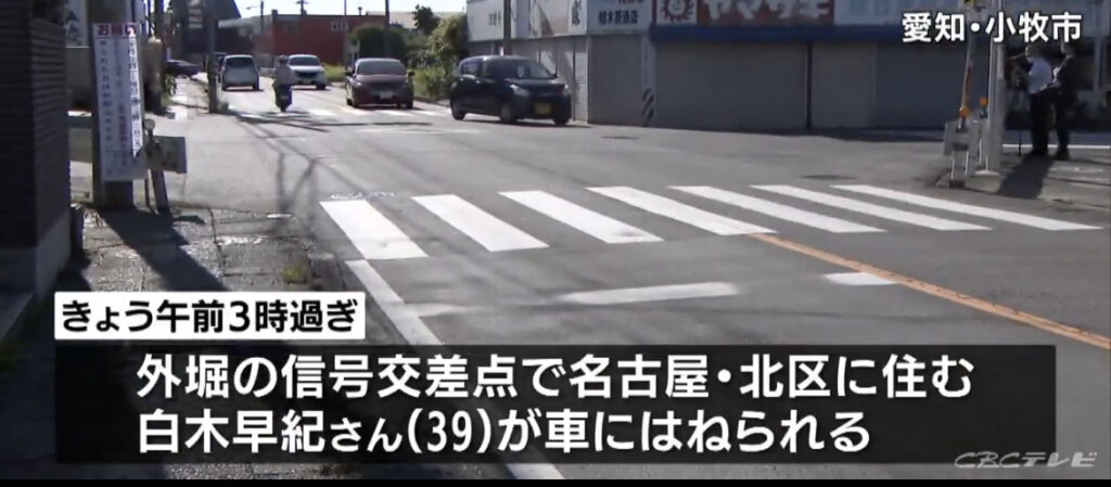 【社会】交差点でしゃがみこんだ39歳飲食店店員の女性が車にはねられ死亡 乗用車走り去る 当時車側の信号が青で直前にしゃがみこんだか 愛知・小牧市