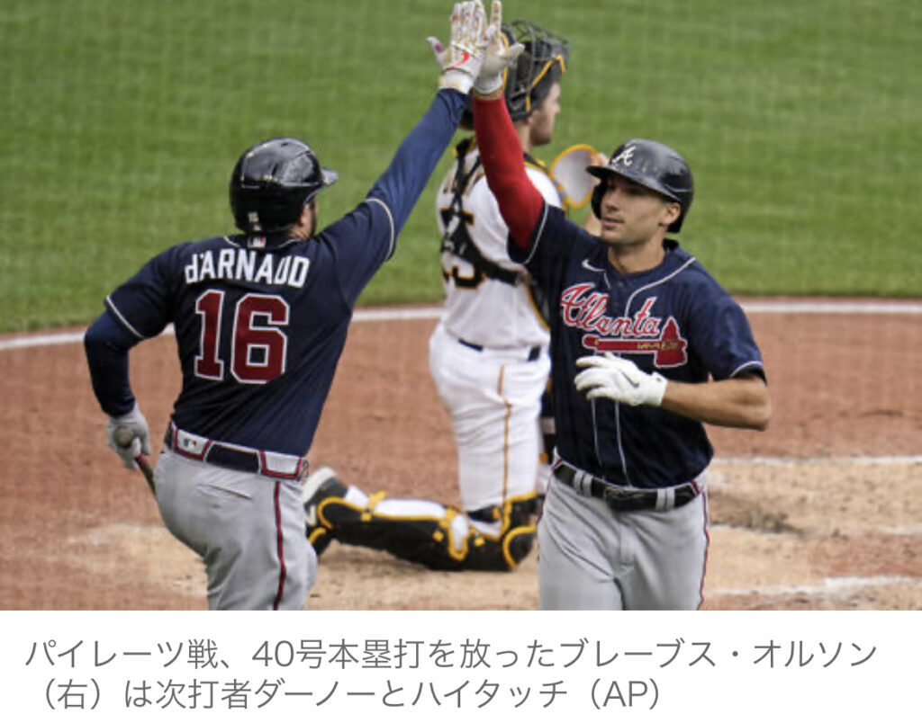 【MLB】ブレーブス・オルソン、大谷翔平に並ぶ40号 打点も両リーグトップ「101」