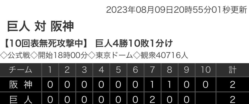 1: 鉄チーズ烏 ★ 2023/08/09(水) 20:46:04.91 ID:1XS2wBl/9 中日 0 0 0 0 0 0 0 0 2 |2 DeNA 1 0 1 5 0 1 0 0 x |8 【バッテリー】 (中) 鈴木、岡野、田島、齋藤、松山 - 宇佐見、石橋 (De)バウアー、石川、... -