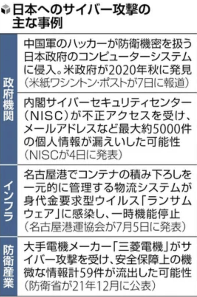 1: ばーど ★ 2023/08/09(水) 09:59:07.55 ID:wtZdWwmg9 中国軍のハッカーが防衛機密を扱う日本政府のコンピューターシステムに侵入していたと報じられ、サイバー攻撃に対する日本政府の 脆弱ぜいじゃく 性が浮き彫りとなった。政府は、サイバー領域におけ... -